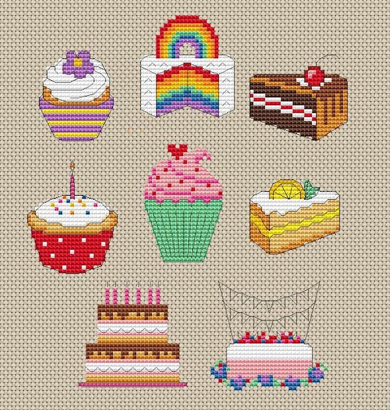 Colourful Cakes Set Of Eight Plus Abc And Numbers Birthday Etsy